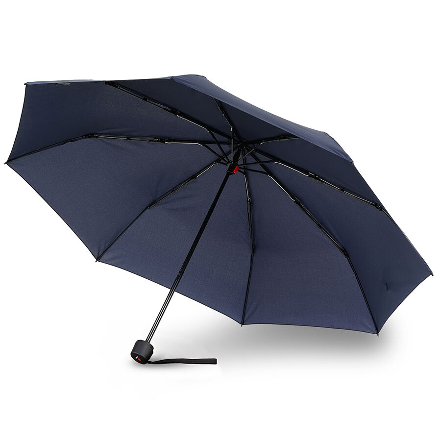 THE Knirps for EVERYONE - a pocket umbrella with manual opening mechanism and a pleasantly large umbrella canopy, under which even two people can find space. This is a good way to describe the Knirps A.050. The umbrella is opened and closed manually by hand without effort. Due to the 3-piece steel pole, this model can be folded to a comfortable 24 cm and therefore easily fits in a bag or backpack. The umbrella is manufactured in well-known Knirps quality and has been tested in a wind tunnel at wind speeds of up to 80 km/h. The stability is additionally increased by the 8 struts in the canopy, as the struts distribute the wind load optimally. The frame is modern black and the canopy is available in different colours.